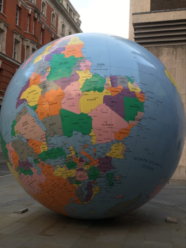 This upside down globe was an installation outside the Peacock Theatre in London in October 2021. It’s very strange to see the image we’re used to inverted; the brain struggles to accept it. George Verwer was keen to turn things upside down, or right-side-up, depending how you see that!