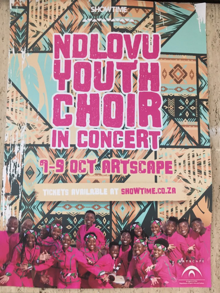 For those who enjoy their stats, t’s a forty-year-old arts centre with a seating capacity of approximately 1,500. There was a fascinating exhibition of theatrical costumes and designs in the foyer as well as glasses of bubbly selling for the equivalent of £1.50 (seriously; the good stuff too). All thrilling obviously; but we were there for the Ndlovu Youth Choir.