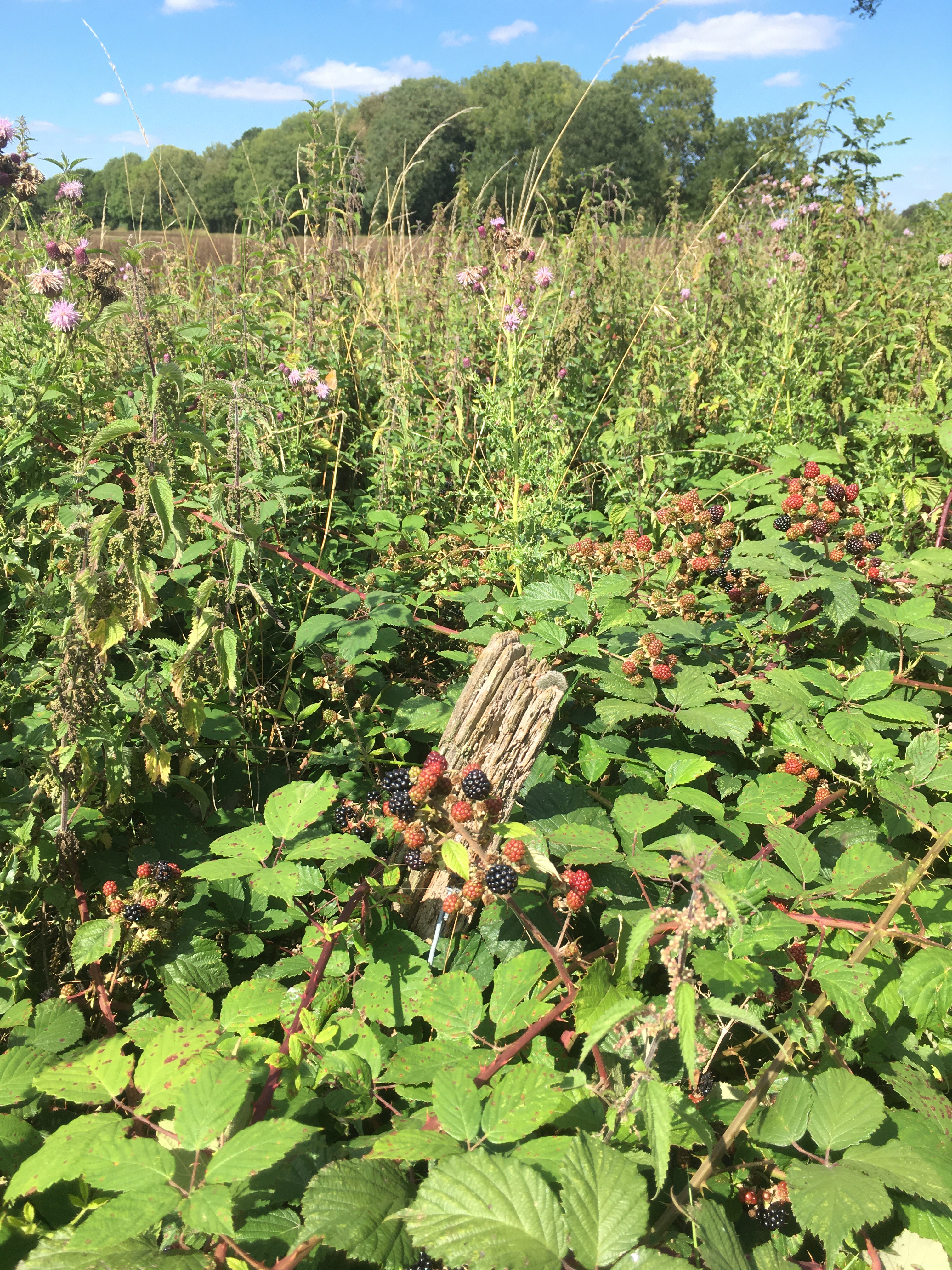 Already there are little bags of black magic nestled amongst the other more pedestrian goodies in the freezer, awaiting colder days when their sharp tang will be savoured. Before then, I plan at least one more excursion during which I will endeavour to pick enough for a weekend treat of blackberry and apple crumble which will be served with lashings of hot custard. This is the king of puddings as far as I’m concerned, but more especially, my Dad’s favourite back in the day. I always think of him when I get the chance to indulge in one.