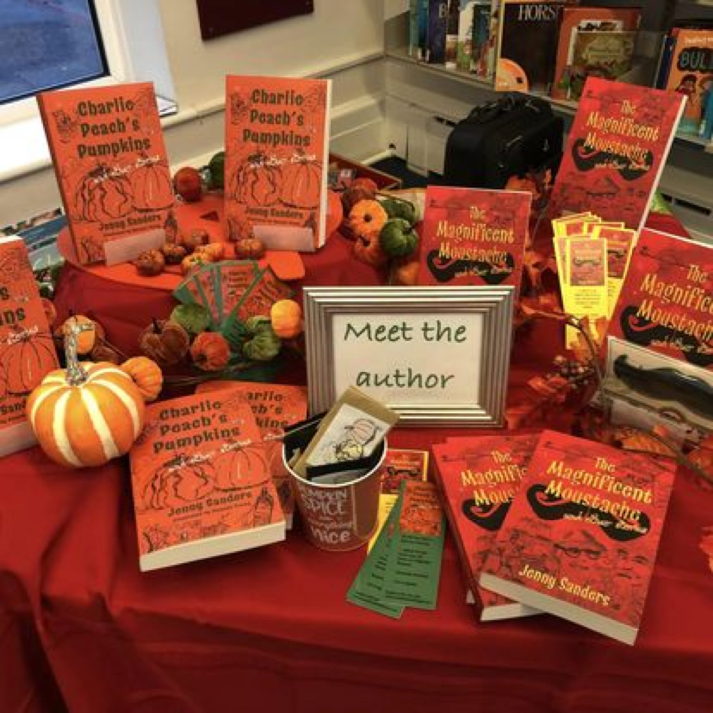 I’ve been sorting out moustaches for those who buy a copy of The Magnificent Moustache and other stories, and sachets of pumpkins seeds for those who prefer a copy of Charlie Peach’s Pumpkins and other stories. A stack of bookmarks are ready to go, pre-signed copies should save me time, and specially priced bundles of both books as a seasonal special have been tied with appropriate red ribbon. I’m good to go!